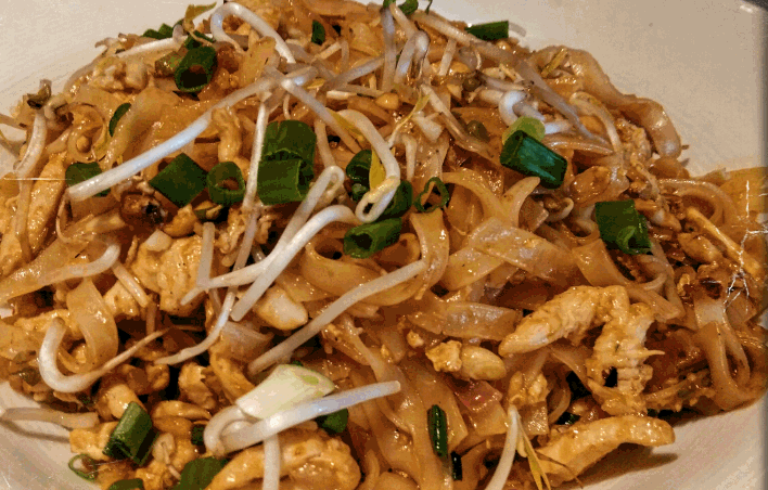 I april måned tilbyder vi: Forret 6 stk. wontons. Hovedret Den klassiske Phat Thai: Stegte nudler med kylling, tofu eller kun grøntsager sammen med bønnespirer, æg, peanuts og friske grøntsager. Normalpris: 158 – lige nu kr. 145,- Vi elsker nudler 🙂